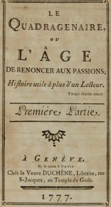 [RESTIF DE LA BRETONNE (Nicolas-Edme)]. Le Quadragénaire, ou l’âge de renoncer aux passions. Genève et Paris, veuve Duchène, 1777. 2 parties en un volume in-12, demi-veau fauve, dos lisse orné, tranches rouges (Reliure ancienne).