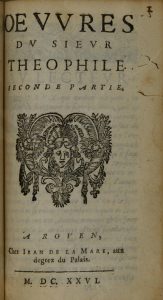 VIAU (Théophile de). Les Œuvres de Théophile, divisées en trois parties. Rouen, Jean de la Mare, [1626]- 1627. 3 parties en un volume in-12, vélin ivoire à rabats, dos à nerfs, tranches jaspées (Reliure moderne).