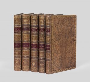 [BARTHÉLÉMY (Jean-Jacques)]. Voyage du jeune Anacharsis en Grèce, dans le milieu du quatrième siècle de l'ère vulgaire. Paris, De Bure l'aîné, 1788. 5 volumes in-4, veau raciné, dentelle aux petits fers dorée, dos orné aux petits fers,...