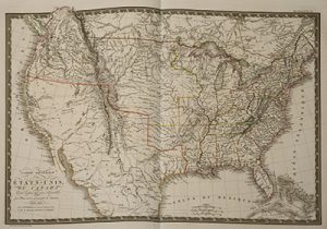 Huit cartes à double page du continent américain (États-Unis, Canada, Mexique et Amérique centrale, Antilles, Colombie, Guyane, Pérou, Chili, Brésil), gravées d'après Adrien-Hubert Brué, avec les liserés coloriés et le cachet sec des Cartes encyprotypes du fonds de l'auteur. # Reliure frottée, plats décolorés.