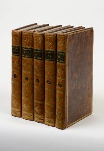 Édition originale. # Ce voyage en Europe du Nord et de l'Est avait été entrepris durant la Révolution française par deux royalistes émigrés, le comte Fortia de Piles et son ami le chevalier de Boisgelin de Kerdu. # L'ouvrage renferme six tableaux dépliants. # Petits accrocs sur deux coiffes, quelques légères rousseurs. Bel exemplaire néanmoins. # Monglond, III, 750.