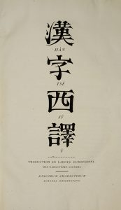 Édition originale du premier dictionnaire chinois publié dans une langue occidentale. # Il s'appuie essentiellement sur le travail de Basile de Glemona Brollo (1648-1704), qui avait en son temps composé un premier dictionnaire chinois/latin resté à l'état de copies manuscrites, les éditeurs de l'époque étant découragés par le coût d’une telle entreprise. # Au XVIIIe siècle, à la demande de Louis XIV, Arcade Hoange, assisté par Étienne Fourmont, entreprit de réaliser une grammaire et un dictionnaire chinois. Fourmont présenta en 1719 la première étape de leur travail au régent qui l’autorisa à faire graver tous les caractères nécessaires. Ils furent transmis au fil du temps à la Bibliothèque du Roi puis Impériale, sans que le projet n'ai vu le jour sous sa forme définitive. La publication fut relancée en 1808 par Chrétien-Louis-Joseph de Guignes qui reprit le travail de ses prédécesseurs en ajoutant les traductions françaises. Fils d’un autre sinologue de premier rang, de Guignes vécut, travailla et voyagea en Chine pendant 17 ans. Il fut le traducteur d’Isaac Titsingh, l’ambassadeur hollandais à la cour de l’Empereur Quianlong de 1794 à 1795, et l’auteur d’un guide de voyage intitulé Voyages à Peking, Manille et l'île de France, faits dans l'intervalle des années 1784 à 1801. # « Cet ouvrage immense a été l'objet de plusieurs critiques, mais il n'en est pas moins le plus complet de ce genre qui existe en Europe, et il est en outre un chef-d'œuvre de la typographie. » (Quérard). # Cachet Jh. Pazès répété. # Partie supérieure du dos décollée, mors fendus, épidermures, quelques rousseurs.