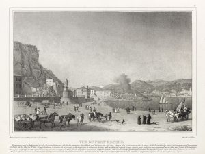 Recueil de jolies vues de Nice et des environs, renfermant un plan, une carte et 12 planches lithographiés représentant le pont du Var, Nice et ses faubourgs, la rade de Villefranche, les quais et le pont neuf, la tour de Clerissi, etc., avec une description des lieux résumant l'histoire du comté. # Quelques rousseurs et planches partiellement détachées.