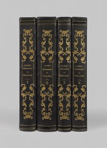 Versailles. Paris, Gavard, 1838-1841. 4 tomes en 2 volumes in-4 ; soit 6 volumes, demi-chagrin bleu nuit avec coins, filets dorés, dos lisse orné d'un grand cartouche rocaille doré, tranches marbrées (Reliure de l'époque).