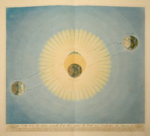 Atlas présenté seul, renfermant sept belles planches doubles gravées en couleurs d'après Sigismond Visconti par A. Gianni, revues par A.-H. Dufour. # Elles illustrent le système solaire, l'orbite de la révolution annuelle de la Terre autour du Soleil avec l'indication des saisons, les différentes positions de la Terre par rapport au Soleil pendant les douze mois de l'année, les phases de la Lune, les éclipses de Soleil et de Lune, les marées et une coupe de la Terre. # Ce recueil de planches devait sans doute servir à l'illustration du Précis du système planétaire pour servir à l'intelligence des tableaux de MM. S. Visconti et A.-H. Dufour, publié en 1830 et 1839 chez le même éditeur. # Quelques frottements à la reliure, mouillure au titre, petit manque marginal à une planche, petits trous d'épingle à deux planches.