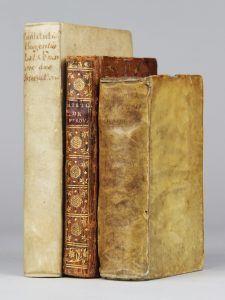Ensemble 3 volumes in-12 et in-8, vélin ou veau de l’époque.