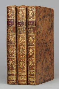 3 volumes in-12, veau blond marbré, dos lisses ornés, tranches rouges (Reliures de l’époque).