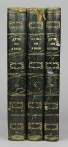 Édition soigneusement revue et corrigée, illustrée de 3 titres ornés, d’une grande vue dépliante des Alpes et de 34 jolies aquatintes réparties sur 22 planches (Vues et costumes).