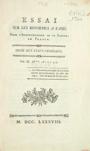 Dédié aux États-généraux. Par M. M*** avocat. S.l.n.n., 1788.- Lettres à un membre de l'Assemblée nationale: servant de supplément à l'Essai sur les réformes à faire dans l'administration de la justice.