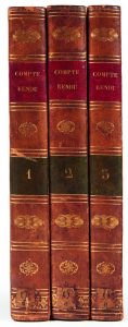 3 volumes in-8, basane fauve, dos lisses décorés, pièces de titre et de tomaison de maroquin rouge et vert, tranches jaunes (reliure de l'époque).