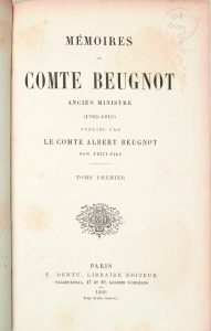BEUGNOT (Jacques Claude, comte) Mémoires du comte Beugnot, ancien ministre (1783-1815). Paris, E. Dentu, 1866.