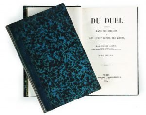 • CAUCHY (Eugène). Du duel, considéré dans ses origines et dans l' état actuel des moeurs. Paris, Charles Hingray, 1846.