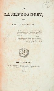 DUCPETIAUX (Édouard) De la peine de mort. Bruxelles, H. Tarlier, 1827.