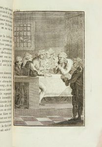 Elle est ornée d'un frontispice gravé dépliant, représentant les "pénibles adieux de Lesurques à sa famille". Reliure usagée.