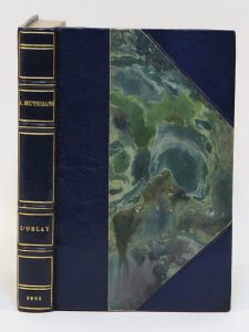 gr. in-12, demi-chagrin bleu nuit à coins, liseré à froid, dos à nerfs orné d’un filet doré en encadrement, tête dorée, non rogné, couverture et dos conservés, [Rel. moderne].