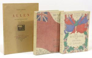 Les Silences du Colonel Bramble.— Les discours du Docteur O' Grady. Bruxelles, éditions du Nord, 1929-1932 ; 2 vol. in-8, brochés, couvertures illustrées rempliées.