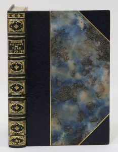 pet. in-8, demi-maroquin bleu acier à coins, liseré doré, dos à nerfs orné de motifs dorés, tête dorée, non rogné, couverture et dos conservés, [Charles Lanoë rel.], dos imperceptiblement passé.