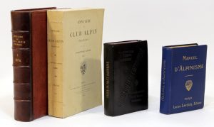 • MANUEL d’alpinisme. Rédigé sous les auspices du Club alpin français. Paris, Lucien Laveur, 1904 ; in-12, cartonnage de l’éditeur toile bleue, titre doré sur le premier plat et en long au dos.