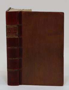 in-12, demi-basane pourpre, plats de basane ocre enduite, dos lisse, pièce de titre.
