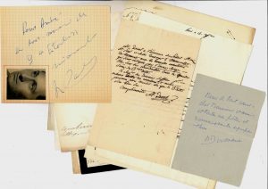 André Antoine (3), Suzanne Avril (3), Jean Amadou, Berthe Bady (2), Albert Bartholomé, Jean Bastia, Adolphe Bérard, Adrien Bernheim (2), Émile Bertaux, Lucien Besnard (3), Georges Besson, André Billy, Charles Bodinier (2), Adolphe Boschot, Yves Brainville (2), Henry de Braisne (2), Auguste Bréal (4), Henri Brémond (4), Julien Brunand (33), Armande Cassive, Jacques Chabannes (3), Xavier de la Chabeaussière, Monique Chaumette, Ernest Chebroux, Paul-Arthur Cheramy, Henri Chivot, Jean Clair-Guyot, Alix Combelle, Alexis de Comberousse, Max Dearly, Louis Debaines, Georges Delamare, Michel Delaporte, Sophie Desmarets, Georges Dolley (3), Raphael Duflos (4), Béatrix Dussane, Alexandre Duval (3), Simon Eine, Frédéric Febvre, Roger de Félice (4), Maurice de Féraudy, Jacques Ferry (2), Henri Foreau (2), Gustave Fraipont, André du Fresnois, Pierre-Victor Galland (6), Germaine Gallois, Jean Gautherin, Paul Gavault (5), Auguste Gendron, Auguste Germain (2), Jeanne Granier, Émilie Guyon (2), Heluy (dessin), Raymond Hermantier (2), Charles Honoré, Jules Hostein, Jean Jallu (3), Jean-Pierre Jorris (2), Pierre Jourdan (2), Benoit Jouvin, Boris Kniaseff, Bernard Lajarrige, Pierre Lalo (2), Henry Lapauze (5), Albert de Lasalle, Gloria Lasso, Charles Le Bargy, André Lebon (dessin), Marie Leconte, Augustine Leriche, Félicia Mallet, Robert Manuel, Maurice Maquet, Félix Marten & Perrette Pradier, André Marty, Max Maurey, Renée du Minil, Louis Barizain dit Monrose fils (5), Germaine Montero, Margueritte Moreno (acc.), Charles-Louis Muller (5), Jean Negroni, Nathalie Nerval, Maurice Ordonneau, Lina Pacary, Valentine Page, Émile Perrin, Eugène de Pradel, Charles Prud’hon, Jules Renard (2, vaudevilliste), Line Renaud, J.L. Reutlinger, Pierre Richard-Willm, Jean-Marie Rivière, Madeleine Roch, Henri Rollan, Jules Scalbert, Gabriel Signoret, Cécile Sorel, Lucien Tonnelier (2), Georges Tourreil, Roger Tréville, Jean-Jacques Weiss, Pierre Wolff (5), etc. On joint un lot de photos dédicacées (cirque, spectacle), et quelques partitions (G. Jervis-Rubini, F. Desgranges, R. Eldèse, F. Faugier).