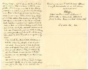 Sur son arrestation en Allemagne, comme suspect de carbonarisme. Il annonce son arrestation par un officier qui « m’a déclaré au nom du Roi que j’étois prisonnier d’Etat. […] Perquisition a été faite de mes livres, de mes papiers, et de mes lettres. On a trouvé quelques lettres de Paris, étrangères à la politique, quelques notes prises à la Bibliothèque de Dresde, sur des dissertations relatives à Platon et à la Philosophie ancienne, et quelques corrections de la traduction du Banquet par Racine. [...] Je reste dans ma chambre qu’on me donne pour prison provisoire avec deux gendarmes, devant lesquels je mange, et je travaille »... Il réclame la protection du gouvernement français. « Sujet loyal du Roi, fonctionnaire dans mon pays, momentanément en disgrâce peut-être avec plusieurs de mes honorables amis, mais sans aucune tache comme citoyen et comme homme, entouré de la considération qui s’attache toujours à une conduite irréprochable, à quelques services, et à des travaux longs et difficiles, je ressens vivement tout ce qu’une pareille affaire a d’offensant pour moi, et de grave dans ma position »... Etc. Il fait suivre sa signature des titres : « Professeur suppléant de l’histoire de la philosophie à la Faculté de lettres de l’Académie de Paris, collaborateur du Journal des Savans, membre de la Société asiatique, etc.