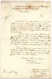 « La protection que votre Excellence accorde aux Lettres et aux Beaux Arts, me fait un devoir de lui donner connaissance de L’histoire de France représentée par figures accompagnées d’un précis historique que je publie, en 2 vol. in-8° et que je destine à l’éducation de la Jeunesse. Il seroit heureux pour moi Monseigneur que cette histoire de France, meritât le suffrage de Votre Excellence, j’oserois la supplier de la protéger, en souscrivant pour un nombre d’exemplaires qui me mettroit à portée de la continuer, avec plus de célérité, et en assureroit plus promptement le succès »...