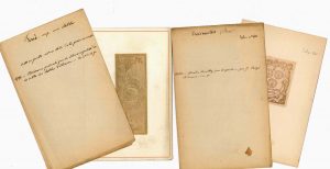 Vignettes avec notes bibliographiques autographes d’Augustin de La Bouralière (1838-1908), historien du Poitou.