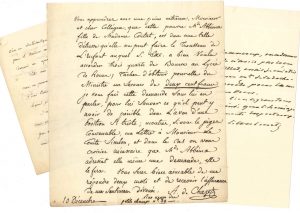 Alissan de Chazet (2), duc de Liancourt, Honoré de Lourdoueix (sur l’attribution d’une pension royale), Armand Malitourne, vicomte de Martignac (3), Édouard Mennechet (2, relatives au Comte Julien), Guillaume-Isidore de Montbel (longue lettre politique d’exil, évoquant le « jeune Henri » promis à de « grandes destinées »), Jacques de Norvins, Charles-Ignace comte de Peyronnet (2, dont une félicitation pour Cadix : « l’heureuse guerre, si bien faite et si bien chantée ! »), Jules de Rességuier (1828, vive critique de V. Hugo et des Deschamps, mordus par « un démon enragé »), Auguste cardinal de Rohan (invitation à une messe à Saint-Pierre de Rome), Alexis de Saint-Priest (2, dont un jugement sur Pélage), etc.