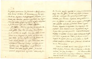 Il évoque des démarches auprès de M. de Virely pour la nomination d’un commissaire. Il prie Guyton de lui renvoyer les « petits globes » avec un relevé de ses essais, pour qu’il ne répète pas des expériences inutilement. « Je me suis procuré quelques onces de platine telle qu’elle sort de la mine que j’ai apportées ici et au premier examen que je viens d’en faire j’ai été assés surpris de trouver qu’elle est mélangée d’une grande quantité de fer atirable par l’aimant et qu’avec de la patience on peut en séparer en entier par ce moyen. Je vais faire cette opération après quoi je voudrois trouver moyen d’ecraser les grains de la platine dans lesquels je suis persuadé qu’on trouveroit encore des particules de fer et peut-être en grande quantité, mais ne voulant pas employer le marteau ni aucun autre instrument de fer pour briser ces grains de Platine je n’ai pas encore imaginé de moyens pour en venir à bout et s’il s’en présente quelqu’un à votre esprit faites-moi l’amitié de me le communiquer »...Reproduit en page 60