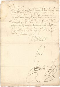 CHARLES IX (1550-1574) Roi de France. L.S., Paris 5 octobre 1567, au « duc de Somme » [Gianbernardo di Sanseverino, duc de Somma, seigneur de Langeais] ; contresignée par le secrétaire d’État Florimond Robertet ; 1 page in-fol., adresse.