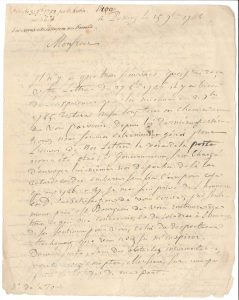 Lettre du supérieur de la mission française en Chine, reprise par les Lazaristes en 1785 à la suite de l’abolition de la Compagnie de Jésus (1773), par le vœu de Louis XVI et avec la bénédiction du Pape. Il y est question des savants jésuites Joseph Amiot (1718-1793), Jean-Joseph Ghislain (1751-1812) et François Bourgeois (1723-1792), ancien supérieur de la mission, devenu administrateur de ses biens, ainsi que des quatre jésuites qui évangélisaient la province : Léon Baron (1738-1784), J.-B. de La Roche (1704-1785), Pierre Ladmiral (1723-1784), Mathieu La Mathe (1723-1786). Raux nomme aussi les jésuites chinois Louis Ko (?-?) et Étienne Yang (1733-1798 ?). Une note indique que cette lettre passa par Henri-Léonard Bertin (1720-1792, ministre d’État, correspondant du Roi et de l’Académie des sciences auprès de la mission).Depuis « la dernière persécution », les missionnaires sont extrêmement gênés pour l’envoi de leurs lettres, mais ils ont reçu les caisses et M. Bourgeois a remis les étrennes, tant pour lui-même que pour M. Ghislain et le Père Joseph. « La paix, l’union et la concorde continuent de régner entre Mrs nos anciens et leurs successeurs. Tous les biens de la Mission, existants à Peking sont réunis, et ne forment plus, comme du tems de la Compagnie de Jesus, qu’une seule et même masse. Nous avons repris l’œuvre des Missions dans les chrétientés des environs de cette capitale. M. Yang qui a porté la chaîne pour la cause de J.S. a déjà fait cette année une excursion apostolique dans la Tartarie, et à Suen-hoa fou. Cependant nos Missions du Hou-kouang et du Kiang-si sont dépourvues d’ouvriers apostoliques. M. Baron est mort ; M. La Roche est mort, et on croit qu’il a été martyrisé. M. L’Admiral est mort ; enfin l’infatigable missionnaire, M. La Mathe est mort aussi dans l’exercice de son ministère. Mr Ko que vous devez connoître aussi bien que M. Yang, reste seul pour faire la besogne de six ou sept. J’attends du monde de France. Nous avons ici un petit séminaire composé de 15 élèves chinois. Deux pourront être ordonnés dans un an ou deux. Je me suis mis à apprendre le tartare. Je commence à me tirer d’affaire : j’envoye à M. Bertin un petit essai de mon travail en ce genre. Je suis fort occupé ainsi que le P. Bourgeois »...On joint une L.S. de J.P. Abel-Rémusat, secrétaire de la Société Asiatique, 1822.