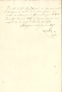 « J’invite le 5me Departement du Gouvernement Norrvégien, de vouloir bien faire payer aux ordres de Monsieur le Général Campo le 4me trimestre l’année 1816 de l’appanage qui me revient de la caisse d’État de Norrvège »... (Pièce biffée de 2 traits de plume après paiement).