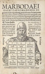 MARBODUS De gemmarum lapidumque pretiosorum formis, naturis atque viribus eruditum cum primis opusculum. Cologne, Hero Alopecius [= Fuchs], 1539.