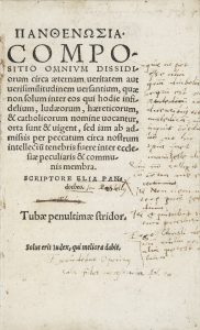 Dans sa Panthenosia, publiée sous le pseudonyme d'Elias Pandochoeus, l'auteur se fait l'apôtre de la Concorde du monde et expose ses idées pour une conciliation universelle entre tous les peuples et toutes les confessions religieuses.