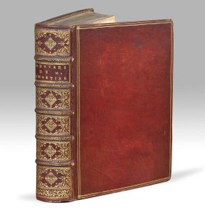 In-4, maroquin rouge, triple filet, dos orné, doublure de soie bleue, tranches dorées (Reliure du XVIIe siècle).