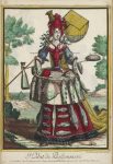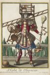 Ces planches, cataloguées au Cabinet des estampes sous le titre Costumes grotesques, représentent des hommes et des femmes revêtus d'attributs, ustensiles et outils de leur profession (Colas).
