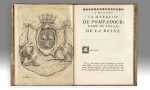 In-4, maroquin rouge, triple filet, armoiries, pièces d'armes aux angles et répétées au dos, dentelle intérieure, tranches dorées (Reliure de l'époque).