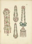 L'ouvrage est orné d'un frontispice de Painger, gravé par Courtois, et de 79 planches à multiples sujets, gravées par Melle Raimbau, présentant des modèles de Brasselets, Boetes à portraits, Girandolles, Boucles à fleurs, Fontanges, Agrafes à corps, Boucles de souliers, Colliers, Nœuds, Bagues, Tabatières, Montres, Peignes, Bâtons d'éventails, et divers ordres, de Malte, Toison, Saint-Esprit, etc.