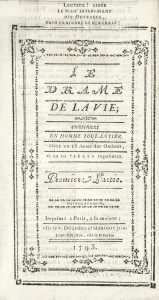 RESTIF DE LA BRETONNE (Nicolas-Edme) Le Drame de la vie. Contenant un homme tout entier. Pièce en 13 actes des Ombres, et en 10 pièces régulières. Paris, à la maison, chés la V. Duchêne et Mérigot jeune, 1793.
