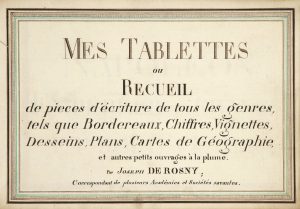 MANUSCRIT. — ROSNY (Joseph de). Mes Tablettes, ou Recueil de pièces d'écriture de tous les genres, tels que Bordereaux, Chiffres, Vignettes, Desseins, Plans, Cartes et Géographie, et autres petits ouvrages à la plume. Manuscrit autographe,...
