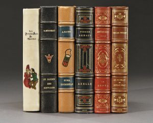 Un volume, in-8, demi-reliure à coins en chagrin noir. Dos à 4 nerfs décoré, en rouge et or, par un motif personnalisé et portant le titre doré, roulette dorée sur les nerfs, tête dorée, non rogné, couverture et dos conservés.