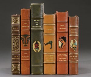 Un volume, grand in-8 carré, demi-reliure à coins en chagrin bronze. Dos à 3 nerfs décoré d’une palette en couleurs personnalisée et portant le titre doré, tête dorée, non rogné, couverture et dos conservés. Dos légèrement éclairci.