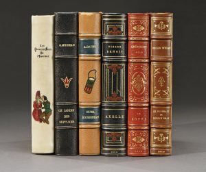 Un volume, in-8 carré, demi-reliure à coins en maroquin chocolat. Dos à 4 nerfs très orné et doré portant le titre doré, roulette dorée sur les nerfs, tête dorée, non rogné, couverture et dos conservés.