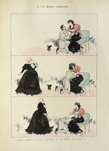 GUILLAUME (Albert). MADAME EST SERVIE. Album inédit en couleurs. Préface de Grosclaude • FAUT VOIR. Album en couleurs. Préface de Auguste Germain • P’TITES FEMMES. Préface de Fernand Vandérem • DES BONSHOMMES. Préface de Henri...