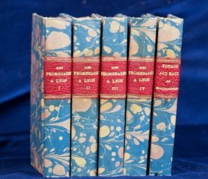 [Mazade (Jbd)]. Lettres Ama Fille Sur Mes Promenades Alyon. Lyon, chez Yvernault et Carin, 1810. 4 volumes in-12, cartonnage bradel, p. de titre mar. rouge, couvertures muettes conservées, non rognés.