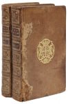 dorées au centre des plats, dos à nerfs orné, tranches rouges (reliure de l’époque). Édition originale rare de ce roman licencieux de Crébillon fils. Il s’agit d’une satire dans laquelle l’auteur tourne en dérision les jésuites et le pape, qui valut à Crébillon quelques jours d’emprisonnement au château de Vincennes ; il fut libéré grâce à l’intervention de la princesse de Conti. Exemplaire aux armes du marquis Claude-Antoine-Clériadus de Choiseul-Beaupré (1733-1794). Lieutenant-général, il fut arrêté pendant la Terreur et guillotiné le 4 mai 1794. Il avait réuni une bibliothèque importante et un cabinet de curiosités (OHR 813). Traces de mouillures, travaux de vers et frottements d’usage aux reliures. Petit manque à la pièce de titre du second volume. Mouillures dans les deux volumes, plus prononcées dans le premier.Provenance : marquis de Choiseul-Beaupré, avec ses armes sur les plats.