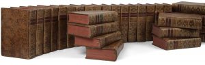 volumes de texte in-8 et 3 volumes de planches petits in-4, 211 x 133. Veau marbré, dos lisse orné, tranches rouges (reliure de l’époque). Adams, Bibliographie des œuvres de Denis Diderot, I, G8, pp. 383-405. Première édition in-8, de la célèbre Encyclopédie Diderot-D’Alembert.