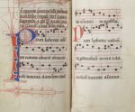 La seconde partie comprend de nombreuses initiales « parties », rouges et bleues. Le manuscrit, essentiellement dans la seconde partie, comprend également de nombreuses pages de musique comportant des portées de quatre lignes en rouge. Même si les Heures et l’office des morts ne permettent pas d’établir de façon formelle l’usage de ce manuscrit, la présence de nombreux saints en rapport avec la ville de Cologne nous permet de penser qu’il était bel et bien destiné au diocèse de cette ville.