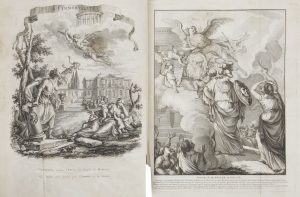 Ces deux gravures sont reliées en tête du recueil. La troisième, située en frontispice du troisième texte, est intitulée « La Vertu récompensée ». Charnières restaurées.