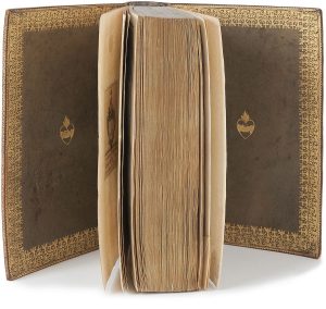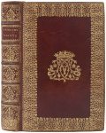 au centre sur les plats, dos à nerfs orné, doublures de maroquin olive ornées d’une dentelle dorée en encadrement et d’une pièce d’armes dorée au centre, tranches dorées (reliure de l’époque). Édition illustrée de 6 très belles gravures sur cuivre hors texte sur papier fort, dont une signée de Poilly et deux d’après Rubens et Le Brun. Très bel exemplaire en reliure doublée de l’époque, provenant de la collection de Pierre Budin d’Esperville ou de son neveu Claude-Clément Budin d’Esperville, tous deux écuyers du roi et directeurs de l’Académie d’équitation de Lyon. Le premier y avait été nommé en 1715 et le second, à la suite de son oncle, en 1723. On retrouve leur ex-libris aux armes, portant la mention « j’apartiens à D’esperville Ecuyer du Roy a LAcadémie à Lyon », ainsi que leur emblème doré au centre des doublures, représentant une main de foi dans un Sacré-Cœur. La reliure comporte également le chiffre couronné AMD doré au centre des plats, qui n’a pas été identifié. Exemplaire très bien conservé malgré quelques frottements d’usage aux charnières et aux coins. Quelques taches aux doublures. Provenances : Pierre ou Claude-Clément Budin d’Esperville, avec ex-libris et pièce d’armes dorée. - Chiffre AMD sur les plats.